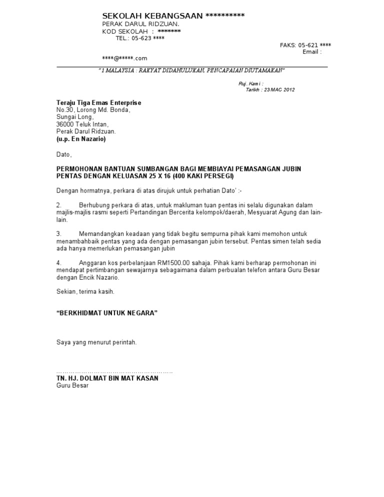Contoh Surat Rasmi Memohon Sumbangan Virallah Otosection