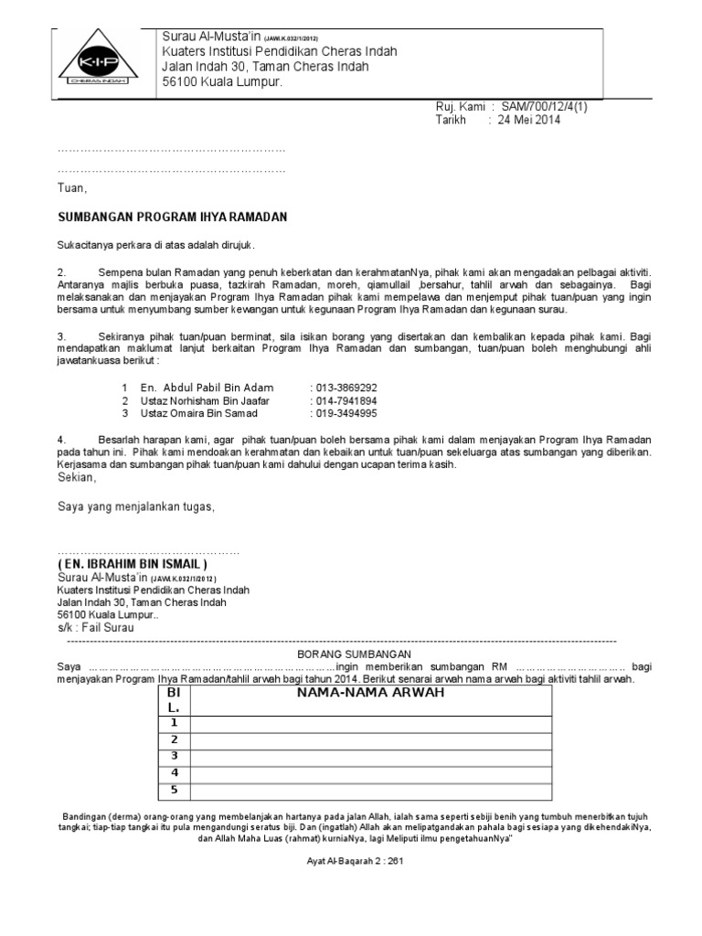 Contoh Surat Sumbangan Ramadhan Dan Aidilfitri Joaquinroclements