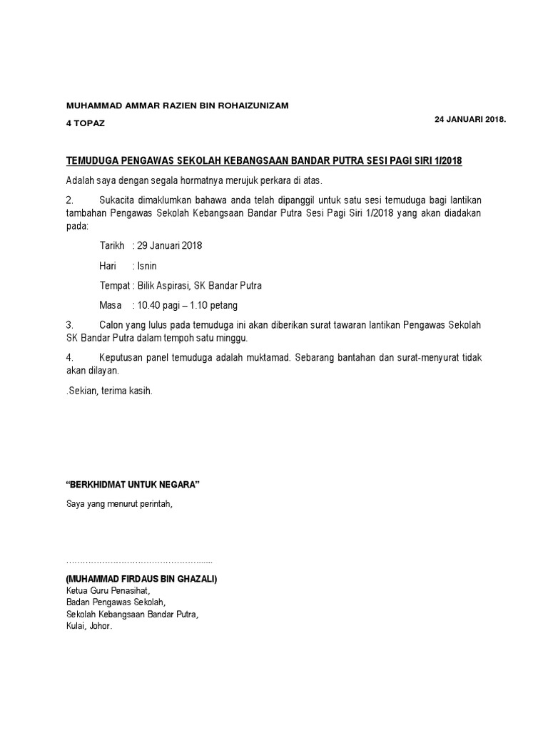 Contoh Surat Tawaran Temuduga Kerja Baru Letter Website